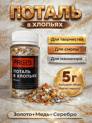 Поталь для творчества в хлопьях — простой способ добавить предметам благородный металлический блеск без сложных инструментов и опыта. Хлопья потали лёгкие, послушные в работе и быстро дают красивый, «дорогой» результат.