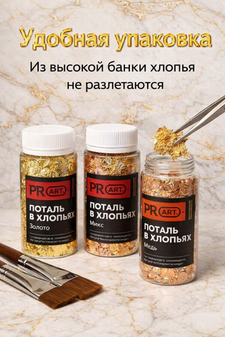 С поталью в хлопьях легко создать эффект настоящего металла даже новичку — результат выглядит стильно и аккуратно, а процесс занимает минимум времени. Акриловая живопись, гипс, мыло, украшение пасхальных яиц, новогодние поделки, изготовление витража, перекраска мебели, декор интерьерных элементов, декупаж и флористика, оформления декоративных элементов из дерева или текстиля.