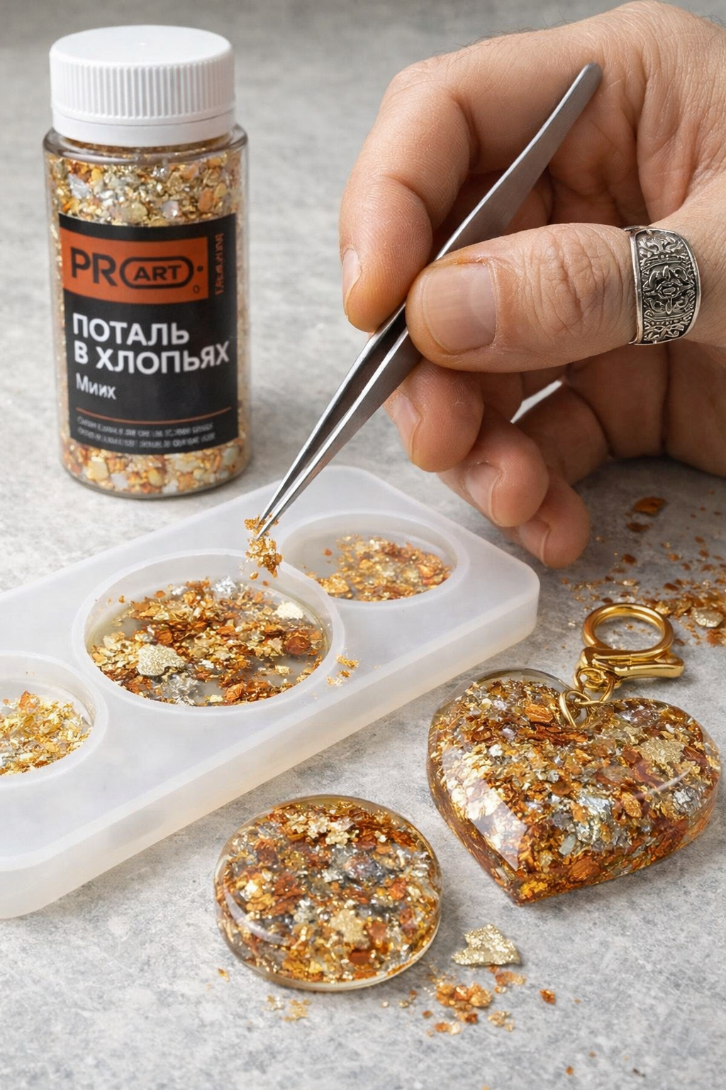 - Тончайшие металлические хлопья для декора и золочения.