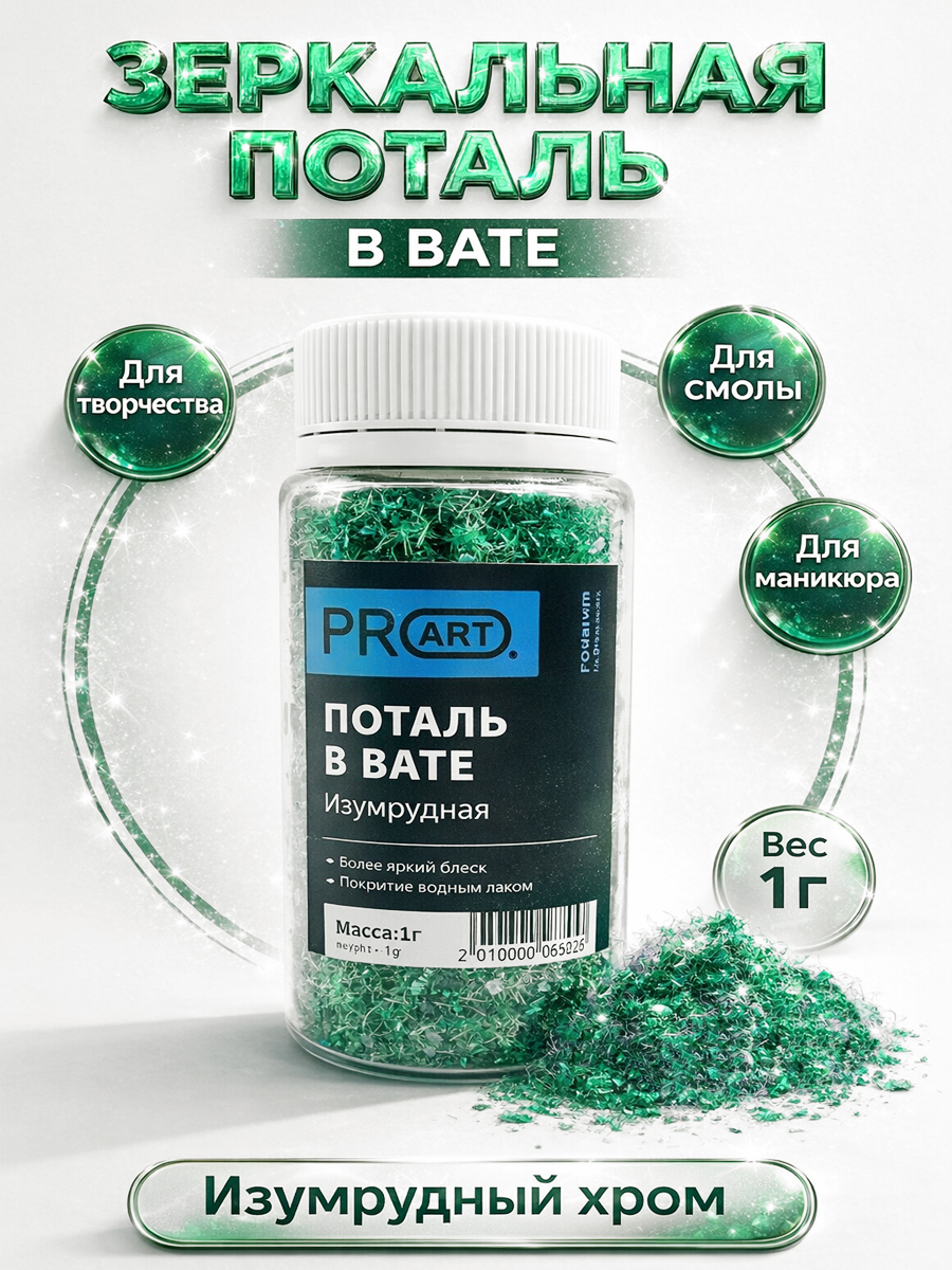 Поталь в вате, Изумрудная, 105мл.,1гр.,ProArt