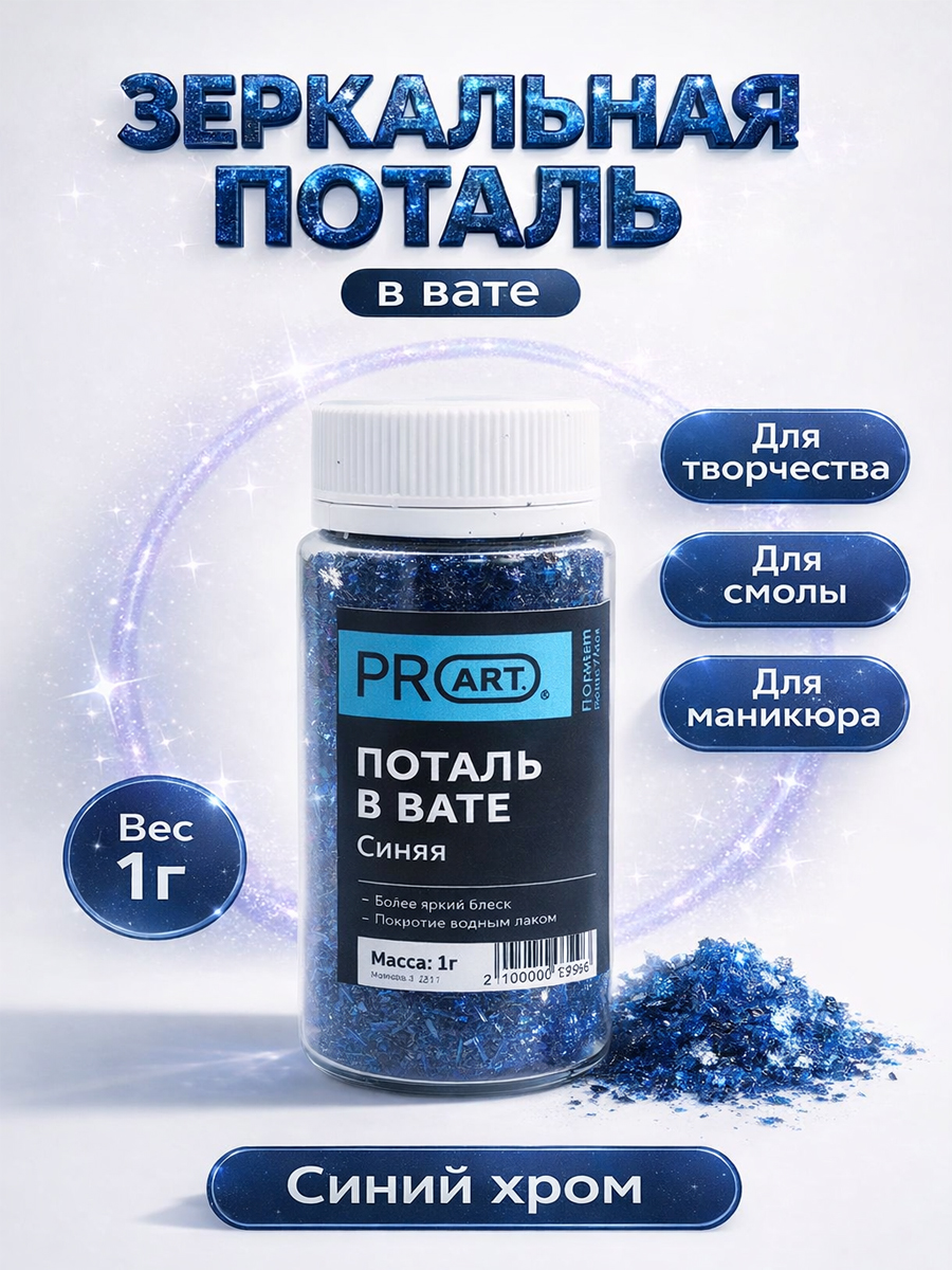Полимерная неокисляемая поталь очень мелкой фракции. Поталь с зеркальным супер блеском не требует покрытия шеллаком. Финишным покрытием для этой потали будет водный лак, который применяется исключительно для механической защиты.