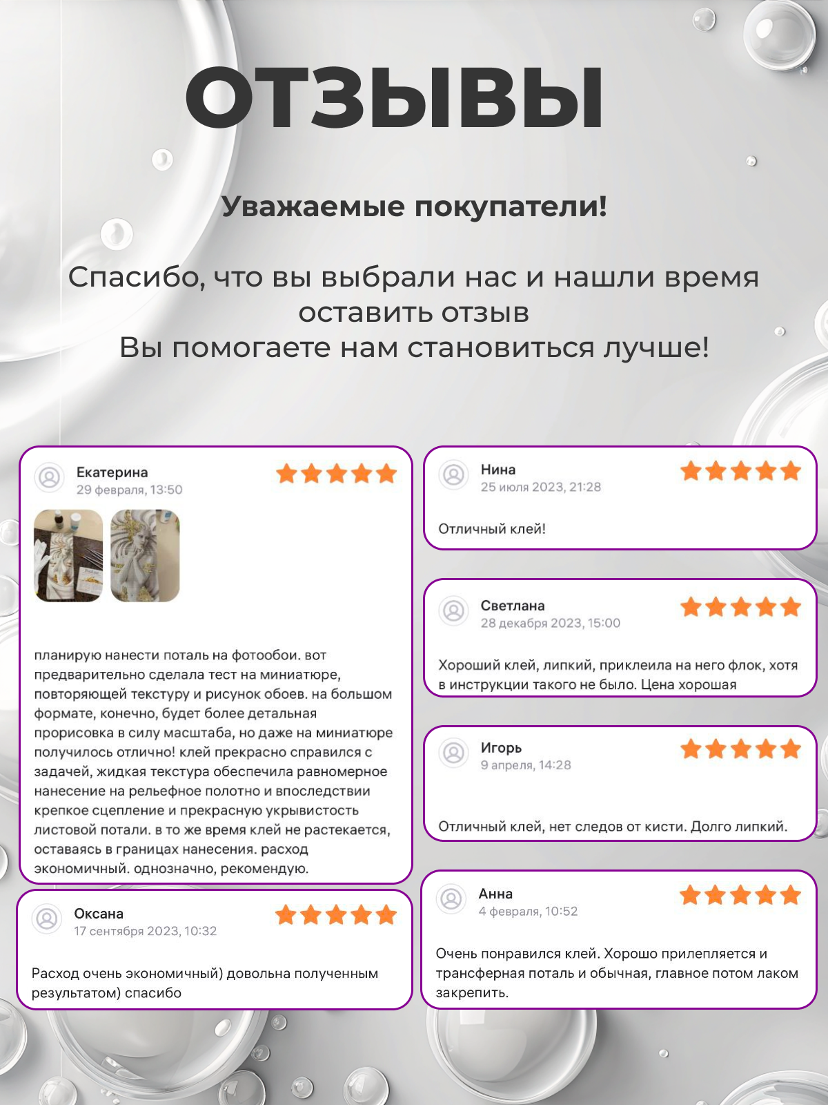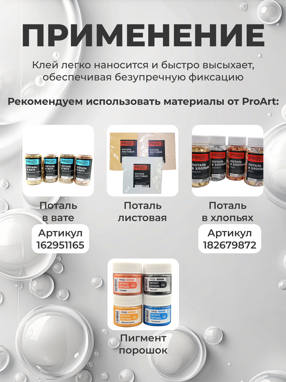 Бесцветный клей для потали на водной основе. Клей подходит для работы со всеми видами потали.