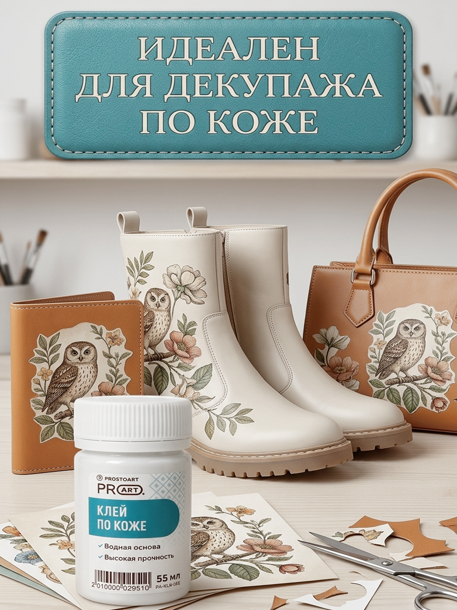 Прочный, гибкий и совершенно прозрачный клеевой слой, который сохраняет пластичность кожи и красоту мотива, обеспечивая долговечный декупаж без трещин и помутнений даже на сгибах.