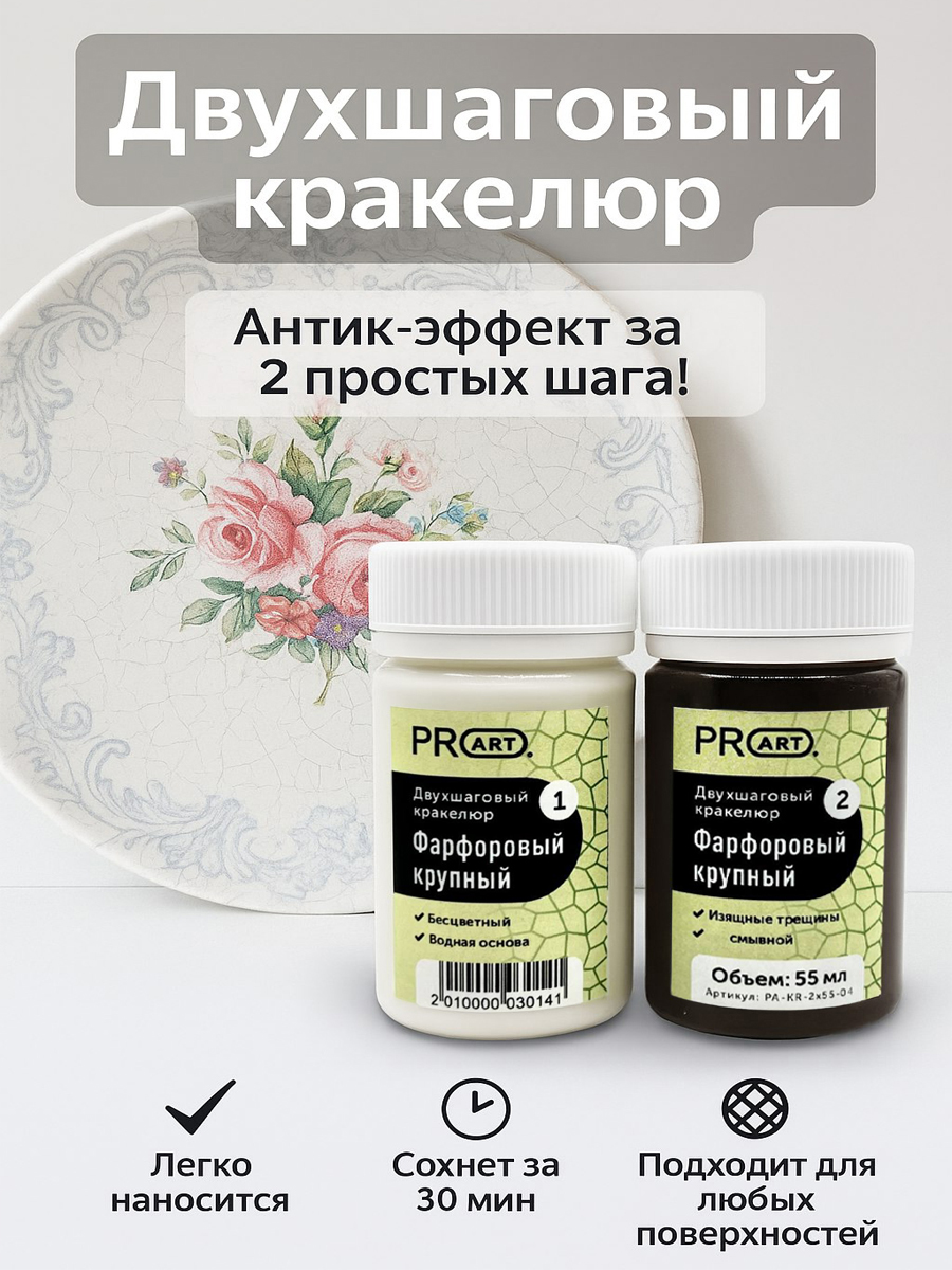 Откройте мир креатива и эксклюзивности, создавая уникальные предметы декора своими руками! Двухшаговый кракелюр "Фарфоровый" – ваш надежный помощник в превращении обыденного в необыкновенное.